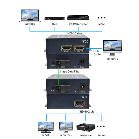 20กม. 1080P HDMI Fc ไฟเบอร์ขยายการส่งวิดีโอกับท้องถิ่น LOOP OUT ด้วย HDCP1.4สนับสนุน IR
