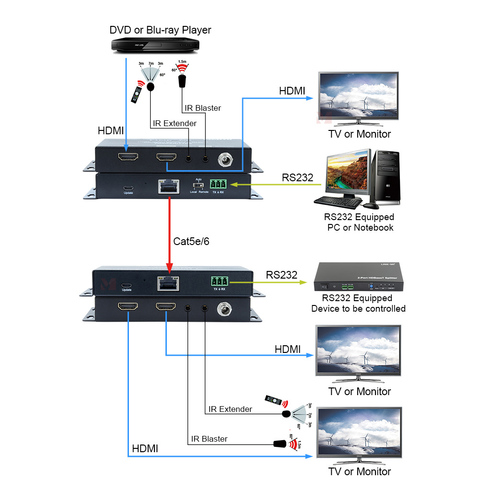 3D 1080P 100M HDMI hdbt Extender พร้อม HDMI Looping OUT over Cat5e/6สายพร้อม Dual poc รองรับ IR RS232 HDCP2.2/1.4