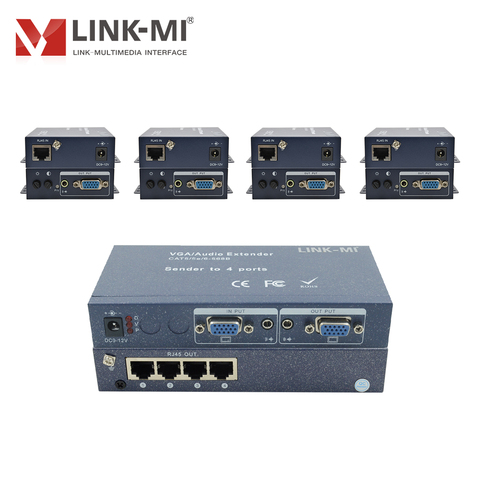 100m/200m/300m 1080P 1x4 VGA Extender splitter 4 cổng với VGA địa phương vòng ra trên CAT5/5E/6 Hỗ trợ màn hình và loa